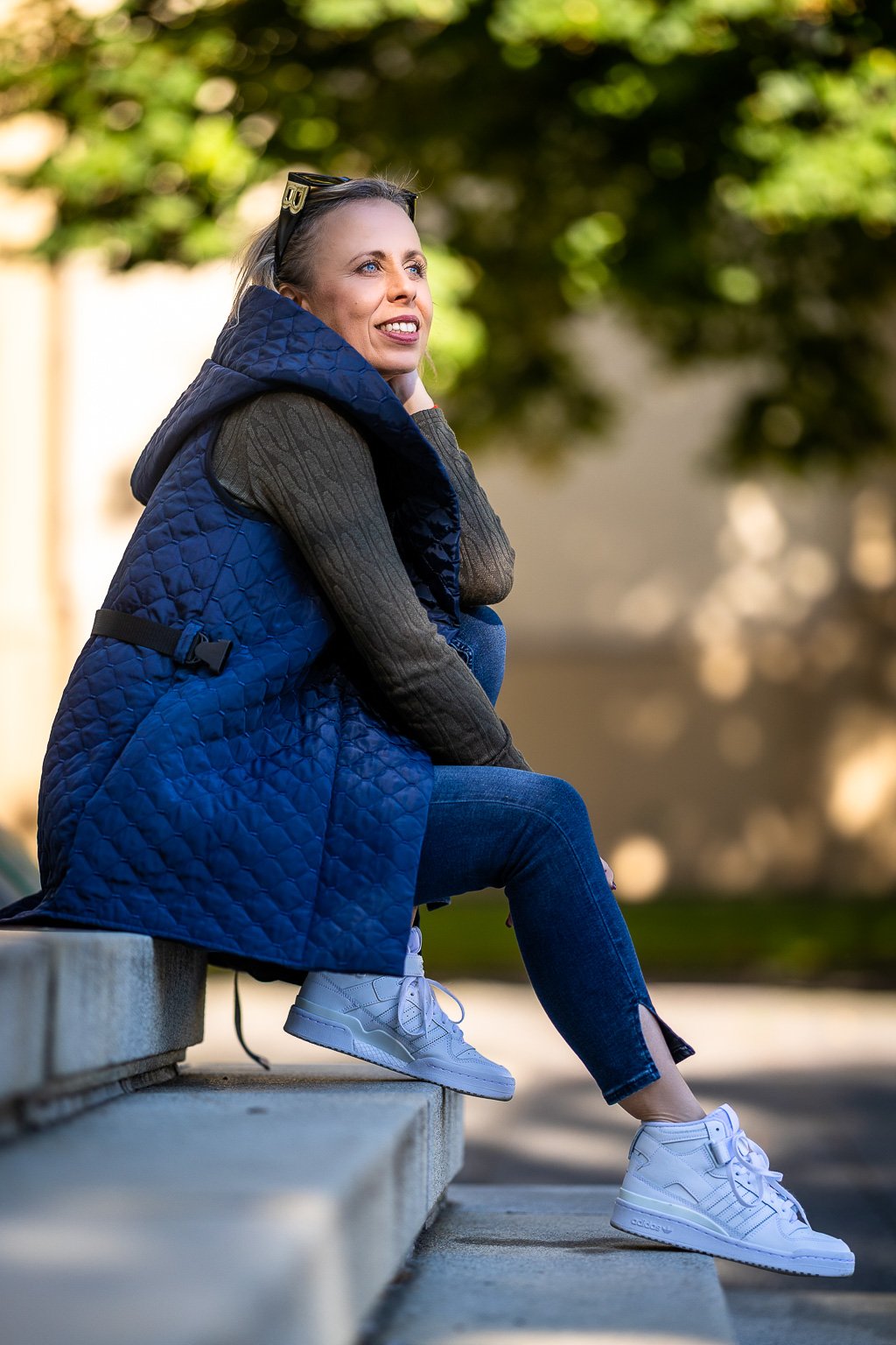 Dlouho jsem hledala střih na novou dámskou vestu s kapucí, který bude splňovat moji představu o dlouhé prošívané vestě a z tohoto střihu jsme připravili i kratší verzi. tato verze bude výborná i na sport, na hory či lyžovačku. Stylovka co každého upoutá a krásný materiál potěší. Když ji zkusíte budete určitě tak spokojená jako já, protože se opravdu lehce kombinuje a nosí i v chladnějším počasí. Na fotkách jsem já, měřím 170cm a mám velikost S-M.