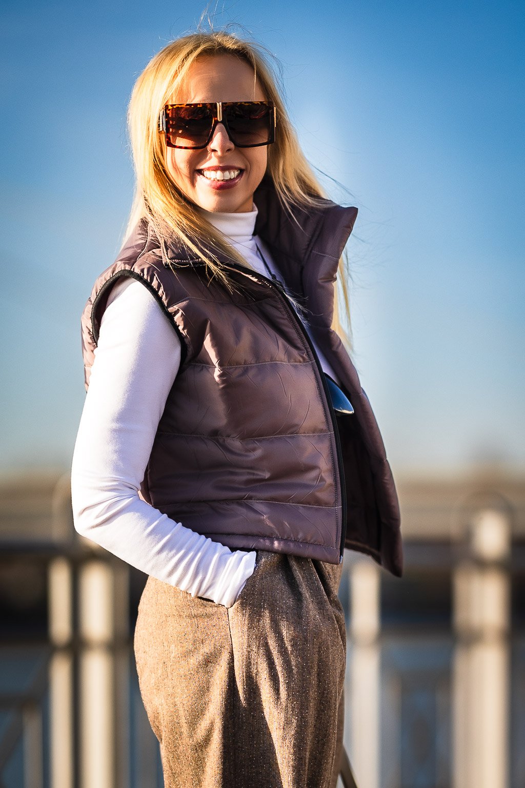 Luxusní stylovka pouze od nás - krátká prošívaná dámská vesta June se zipem, výrazným vysokým límcem a klopou s vyladěnými průramky. Vestička krásně zahřeje a skvěle doplní outfit. Super kousek z naší dílny.