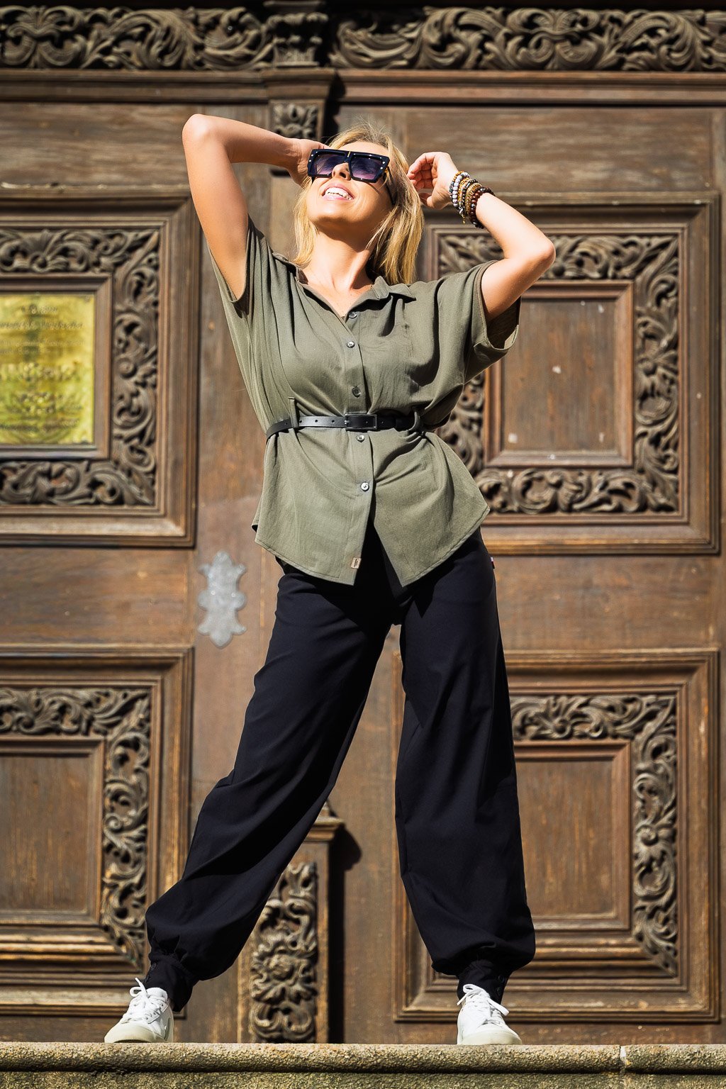 Ahoj kočky! Tohle je Maverick – dámské kalhoty, které pro Tebe šijeme v naší lokální moravské dílně. Černé, lehce pružné a neskutečně příjemné na dotek. Mají mladickou energii, krásně tvarují postavu (ano, i „ten“ super zadek) a díky širokým manžetám na nohavicích vypadají jinak než cokoliv, co máš ve skříni. Kalhoty dámské Maverick jsou trochu extravagantní, ale pořád dokonale nositelné – přesně ten originální kousek, se kterým vystoupíš z davu v práci, na rande i kdekoliv jinde.