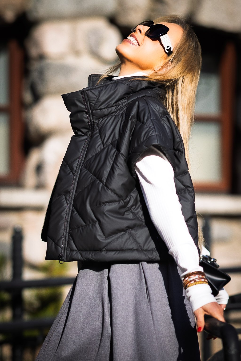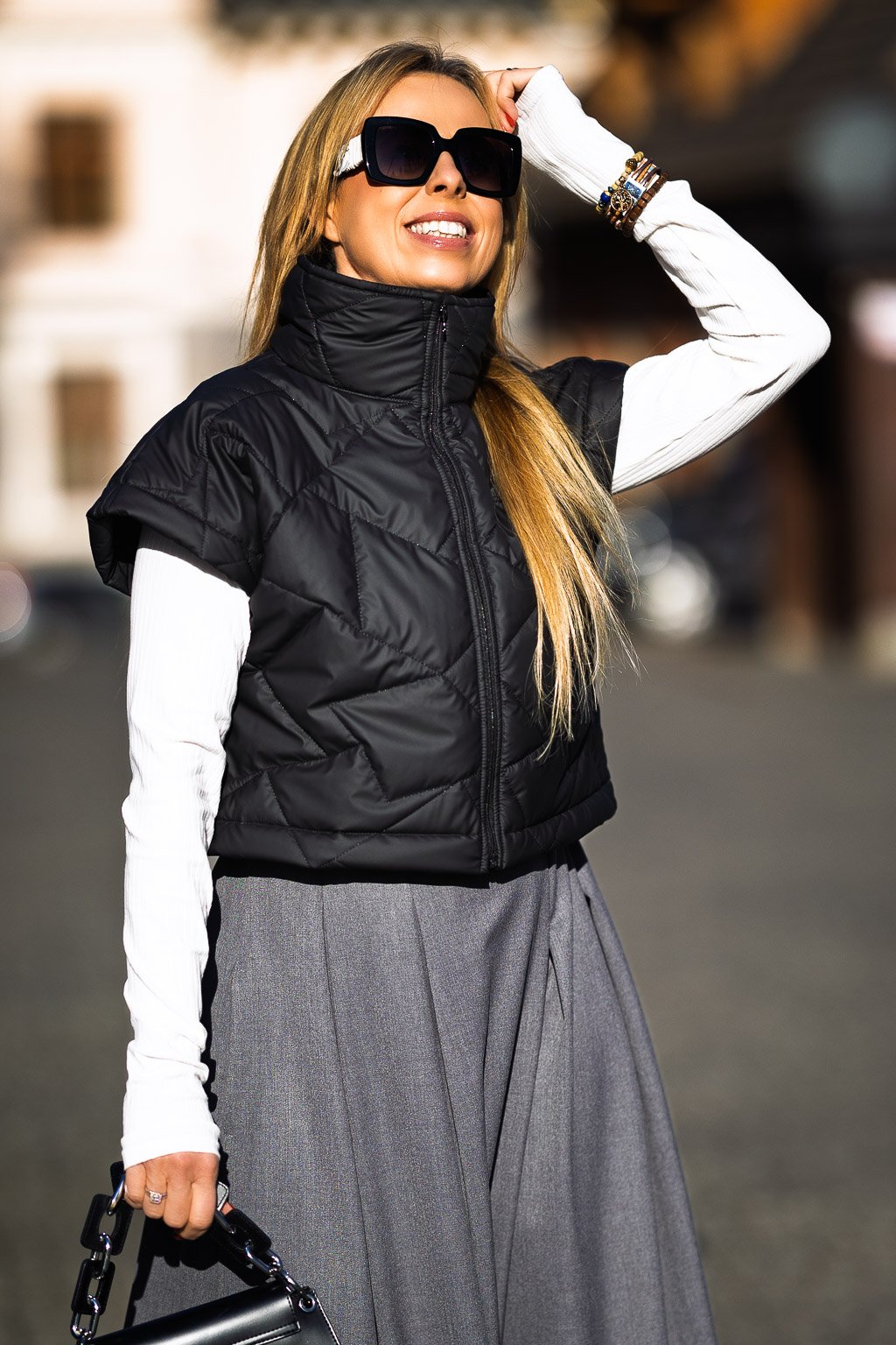 🌙 Dámská krátká vestička APRIL – černá pufovaná elegance z limitované kolekce