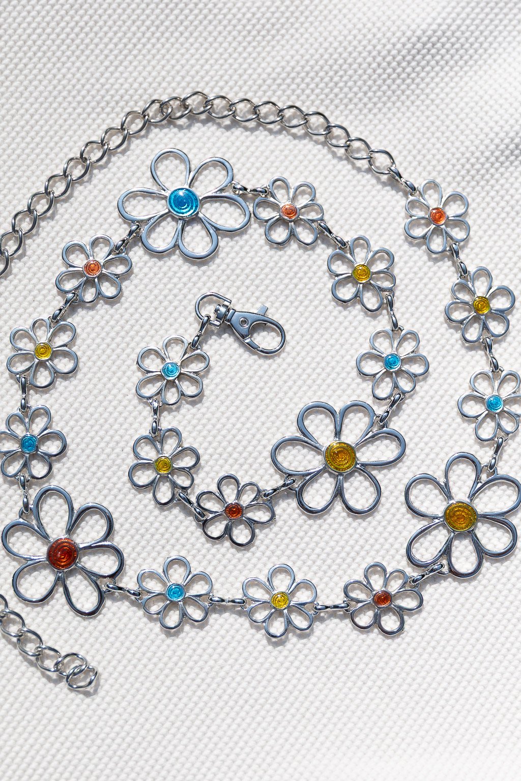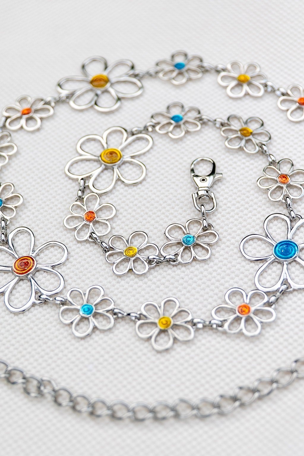 Hravý řetízkový pásek s barevnými kvítky z pravého smaltu. Stylový doplněk, který rozjasní každý outfit – od šatů až po tuniku.