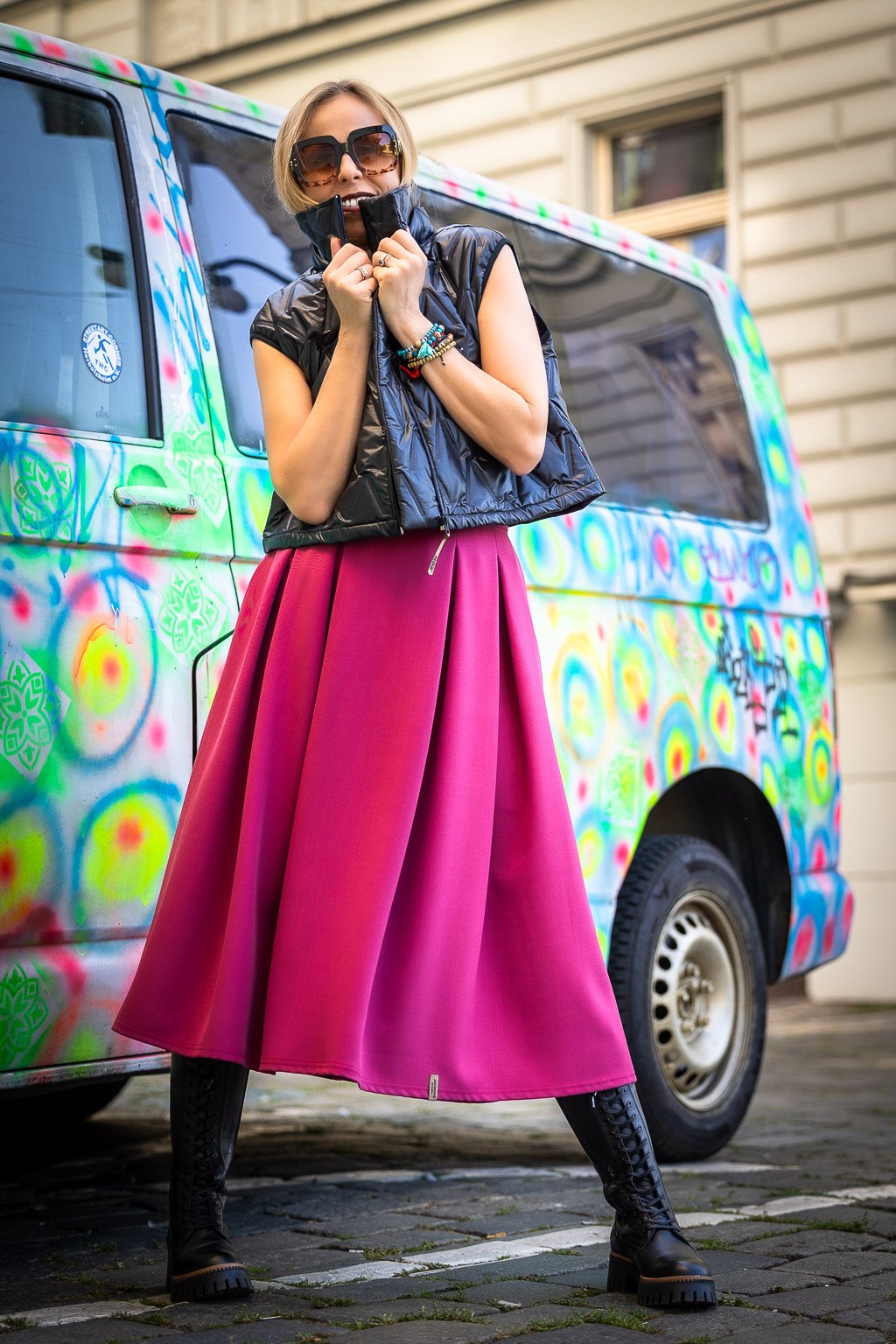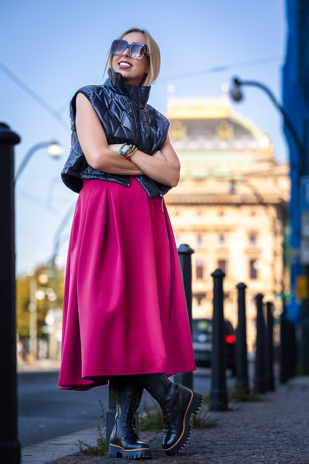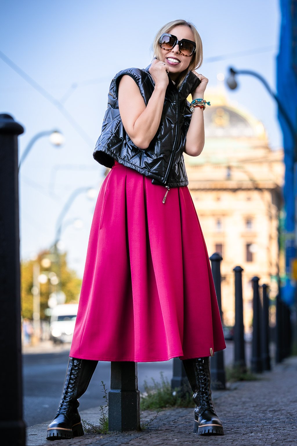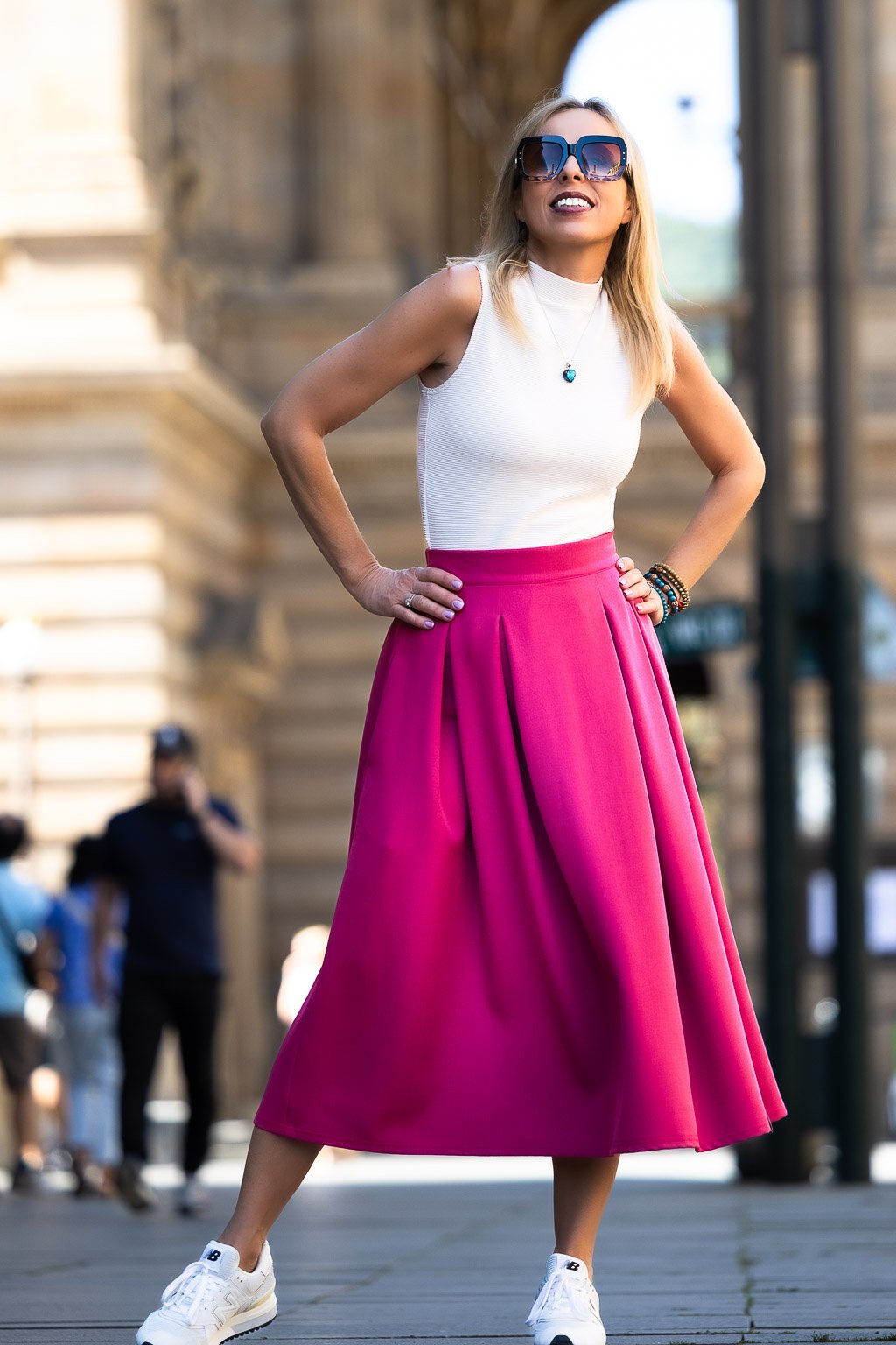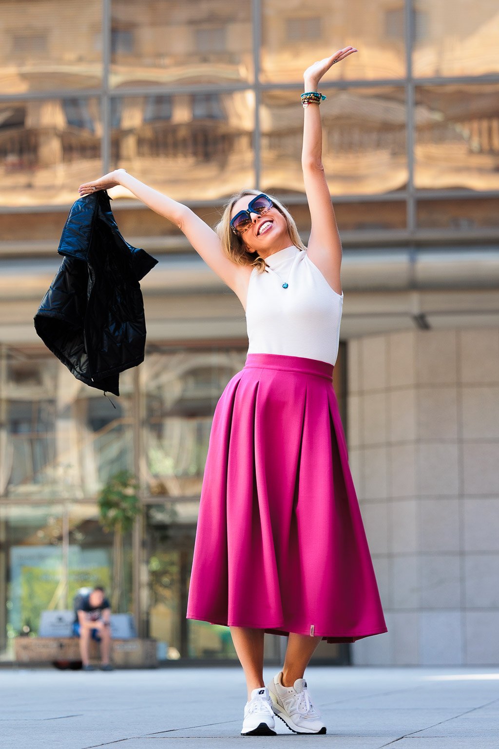 Nová, středně dlouhá, bohatě skládaná midisukně v krásné a trendy růžové barvě. K našim sukním se hodí tričko a tenisky, stejně tak jako elegantní lodičky nebo balerínky. Úžasný a nadčasový princeznovský styl, je jako splněný dětský sen. Sukně se dá nosit na každou příležitost a přitom je úplně pohodlná a šik. V této sukni se za Vámi každý otočí. Navíc se výborně obléká a skvěle ladí k dalším kouskům. Krásnou vychytávkou z našeho ateliéru je hladký pas ze předu a pohodlná guma ze zadní části. Sukně tak vypadá opravdu luxusně a přitom se tak pohodlně nosí.