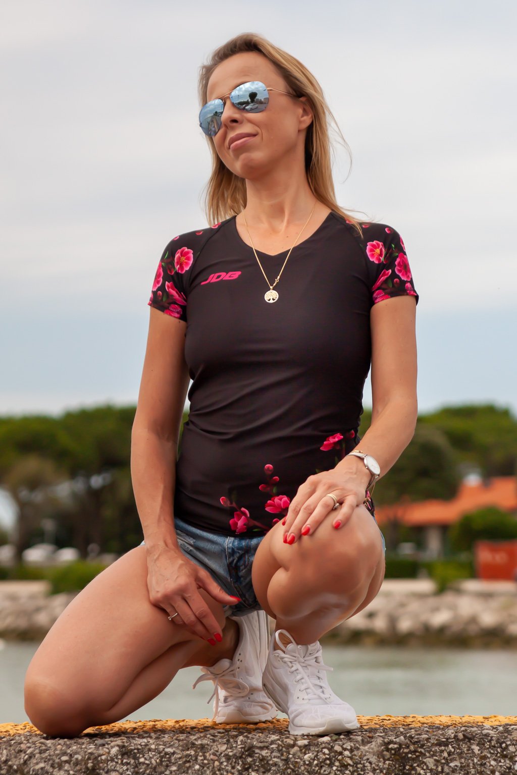 Designové dámské funkční tričko z nové kolekce s krátkým, raglánovým rukávem z extra pružného, plně funkčního a rychleschnoucího materiálu.
