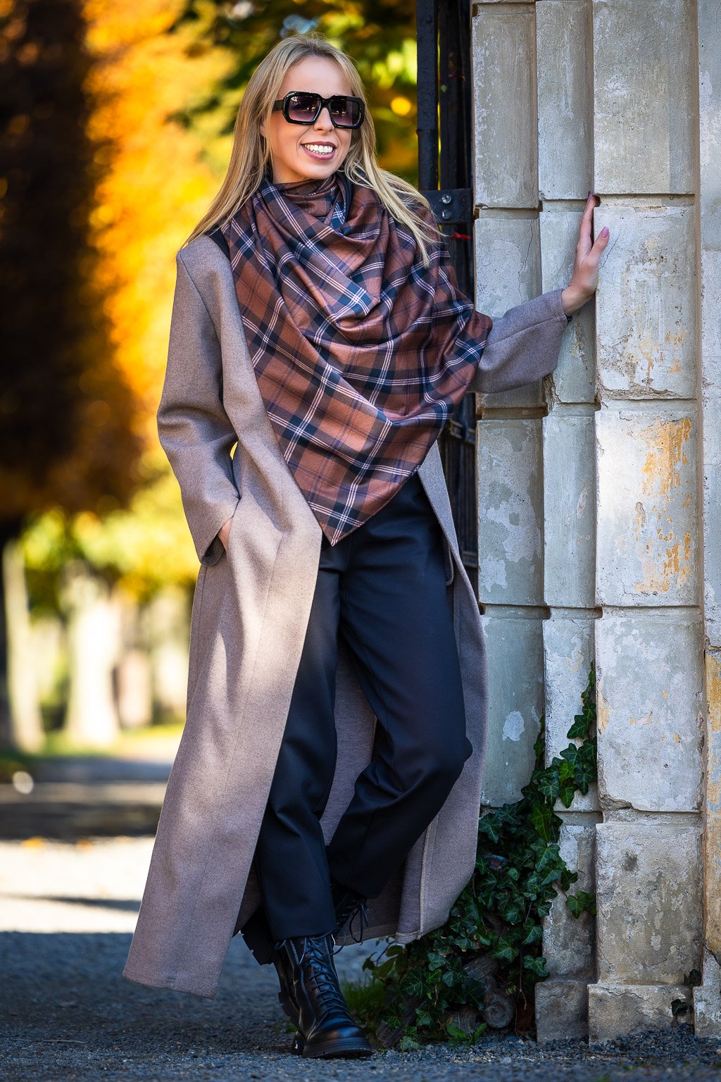 Vybírat z dámských šátků může být náročné, ale náš luxusní šátek se stane bezchybnou volbou pro každou příležitost. Ať už hledáte elegantní šátek na krk pro denní nošení nebo něco speciálního pro večerní událost, dámský šátek Skye je tou pravou volbou. Přidejte do svého šatníku kousek, který vyzařuje eleganci a kvalitu. Výborně se kombinuje s kabáty z naší kolekce, především s hnědým kabátem Tiffany vytváří nádherné kombo.