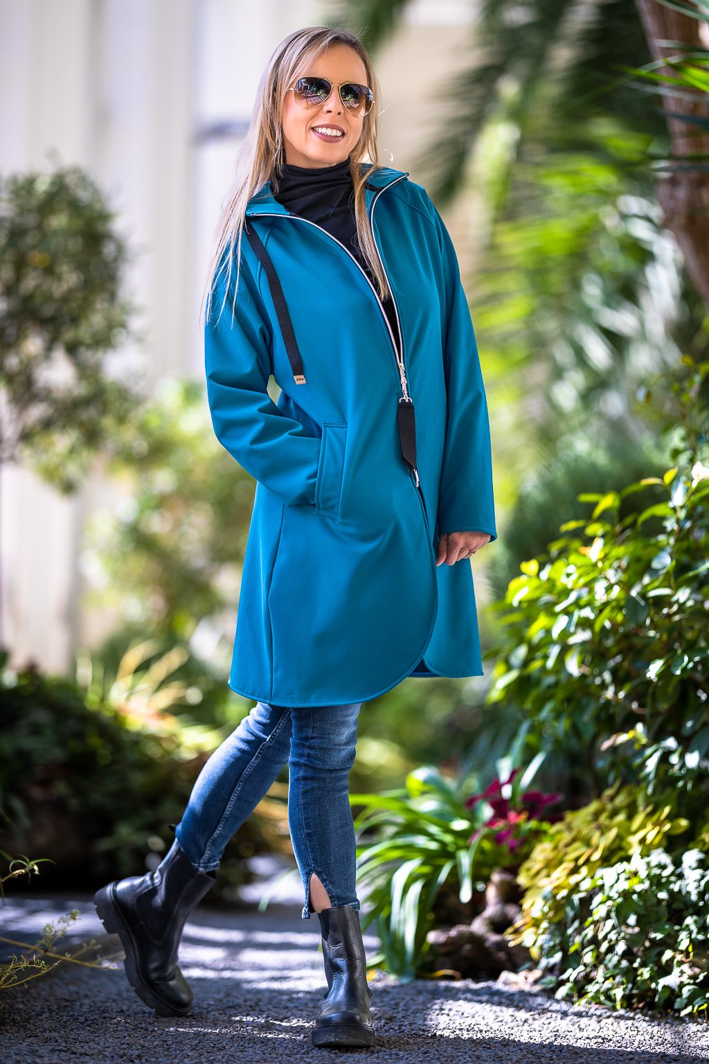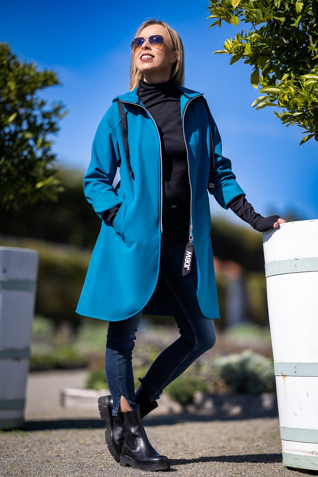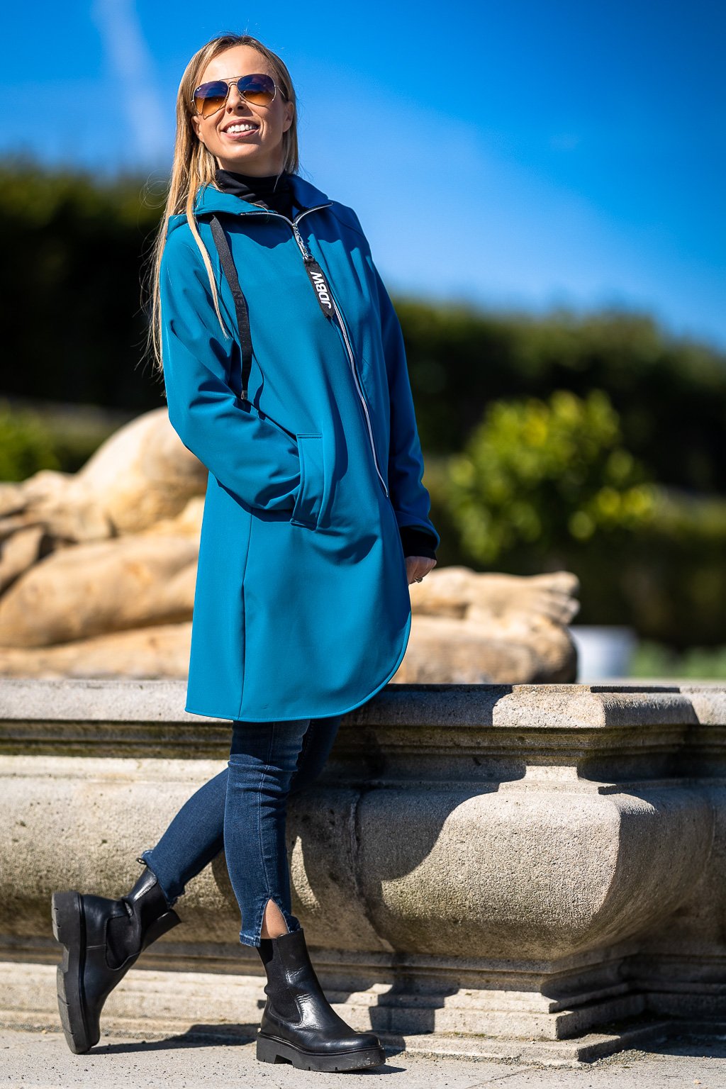 Nová dámská parka je krásnou kombinací funkčnosti a sportovní elegance. Je to šik kousek pro současnou dobu. Krásně zahřeje, neprofoukne a díky velké kapuci v ní můžete vyrazit i do deště, nebo podzimní plískanice. Petrolejová dámská parka jsme vyrobili ze silnějšího, hřejivého a nepromokavého softshellu, odolného proti větru, s vnitřní hřejivou fleecovou vrstvou. Pokud si dáte kozačky a úzké slim kalhoty vytvoříte úžasný outfit a pokud budete chtít styl trochu odlehčit, jako boty použijte trendové workery, které jsou výborné i do chladnější části roku.