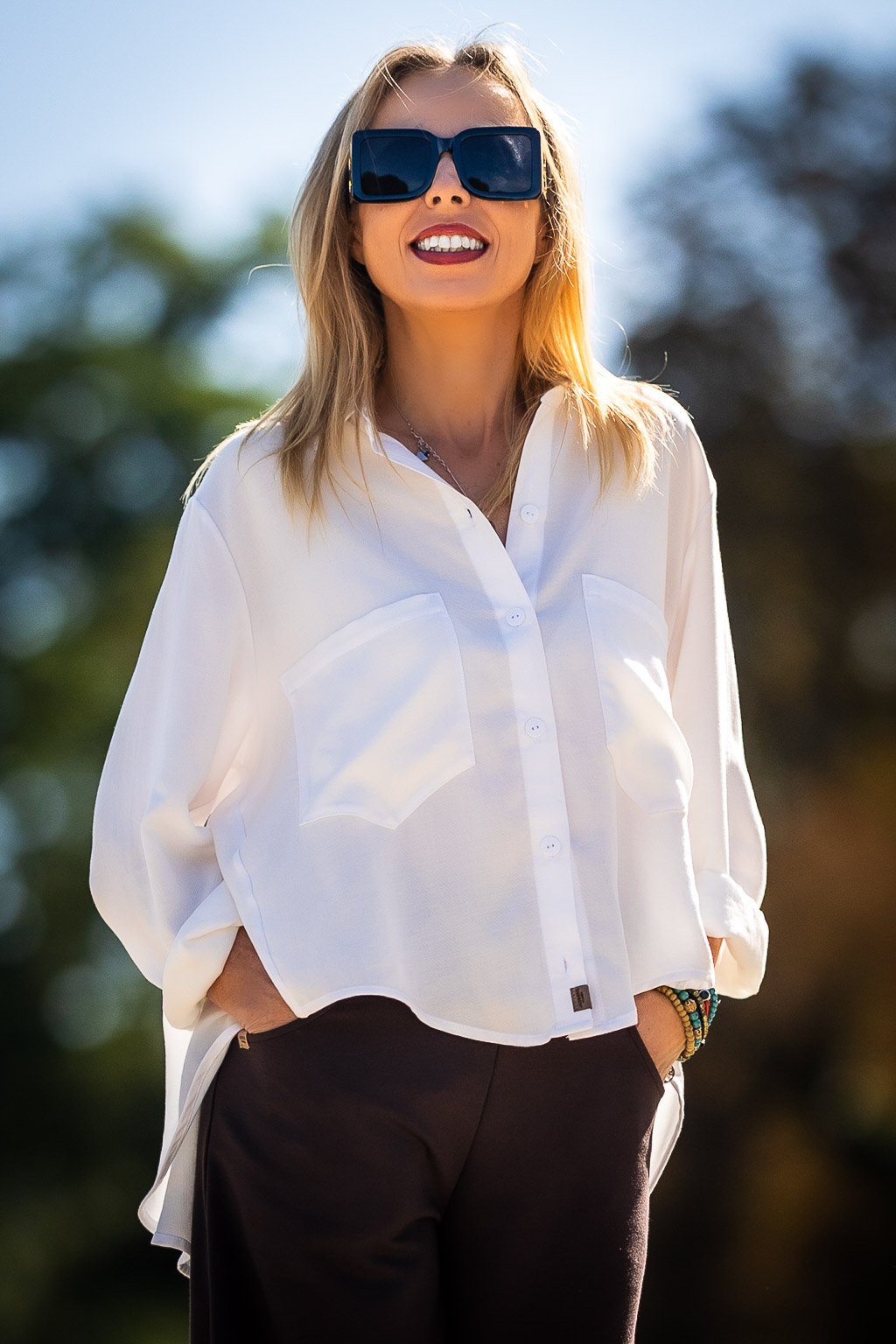 Představujeme vám Bonnie Tencel – nejen košili, ale i novinku v naší kolekci. Tato luxusní bílá dámská košile je symbolem nepřekonatelného stylu a udržitelnosti, která vás okouzlí na první pohled i dotek.