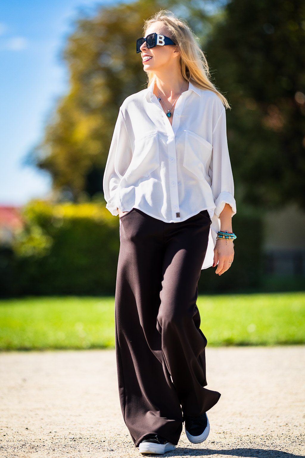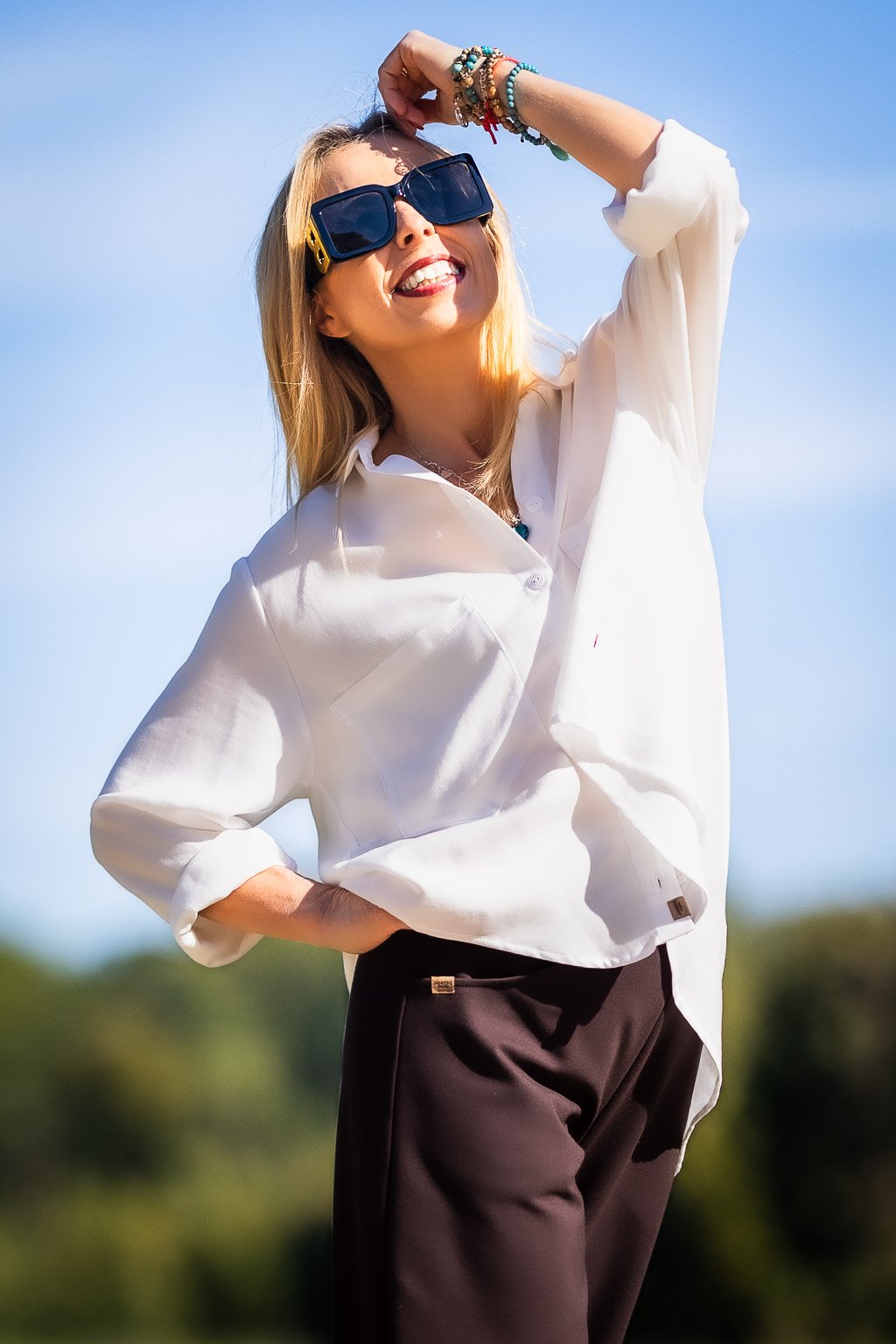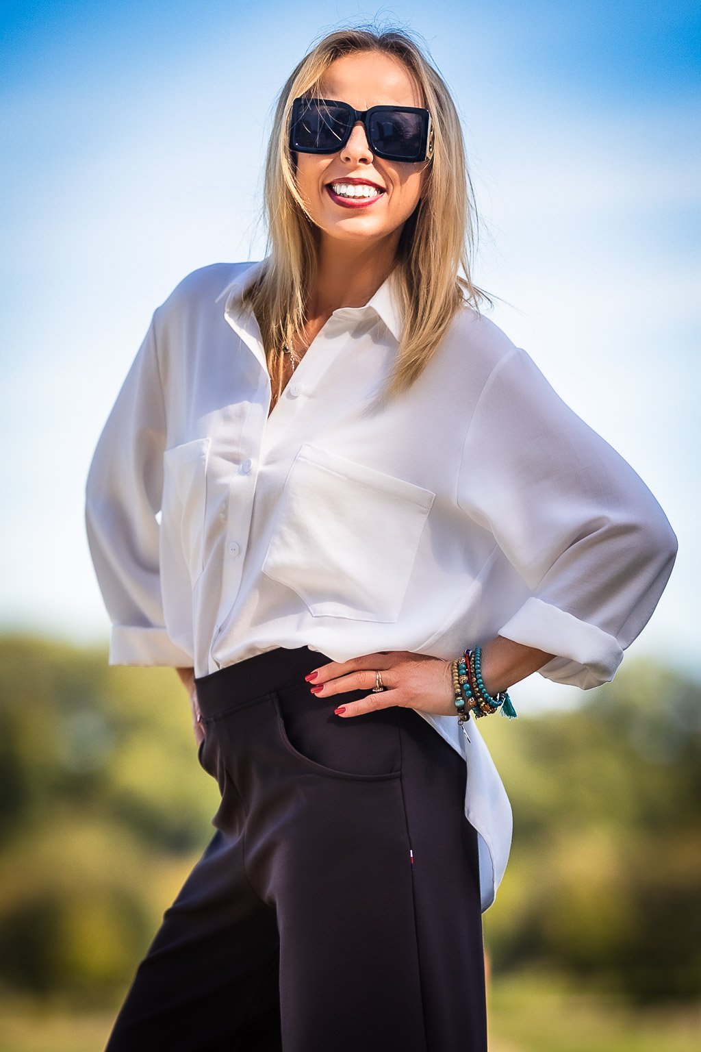 Jakýkoliv outfit s bílou košilí bude okamžitě působí elegantněji. Můžete ji kombinovat s kalhotami a sáčkem a vyrazit do práce. Vepředu ji zastrčte do džínů, nazujte tenisky a můžete se pustit do plnění víkendových úkolů. Zavažte ji, ohrňte rukávy – ať už upřednostňujete jakýkoliv styl nošení nebo v jakoukoliv roční dobu, s bílou košilí prostě nemůžete šlápnout vedle. Pokud půjdeme ještě hlouběji, dle dávných východních teorií bílá barva košile spolu s černými kalhotami nebo sukní vytváří barevnou kombinaci, která podporuje okruh ledvin a tím nám dodává odvahu, samostatnost a sebejistotu.