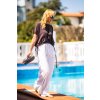 Halenka Airi v tmavě hnědém odstínu je pohodlný a stylový kousek s boho duší, který skvěle padne každé postavě. Je vyrobená ze 100% viskózy, má krátké rukávy, nastavitelné stažení v pase a je ideální pro toto období.