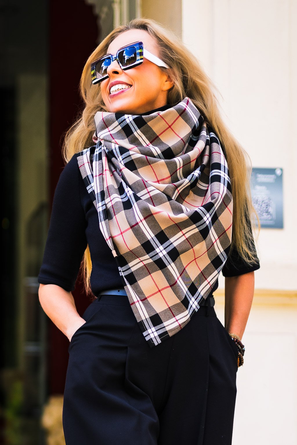 Seznam se s Kenzi – naší novou dámskou šálou v teplém béžovém tartanu s černými a jemně červenými linkami. Šijeme ji lokálně u nás na Moravě a je to znát: je pohodlná, drží tvar a vypadá luxusně bez zbytečné okázalosti.